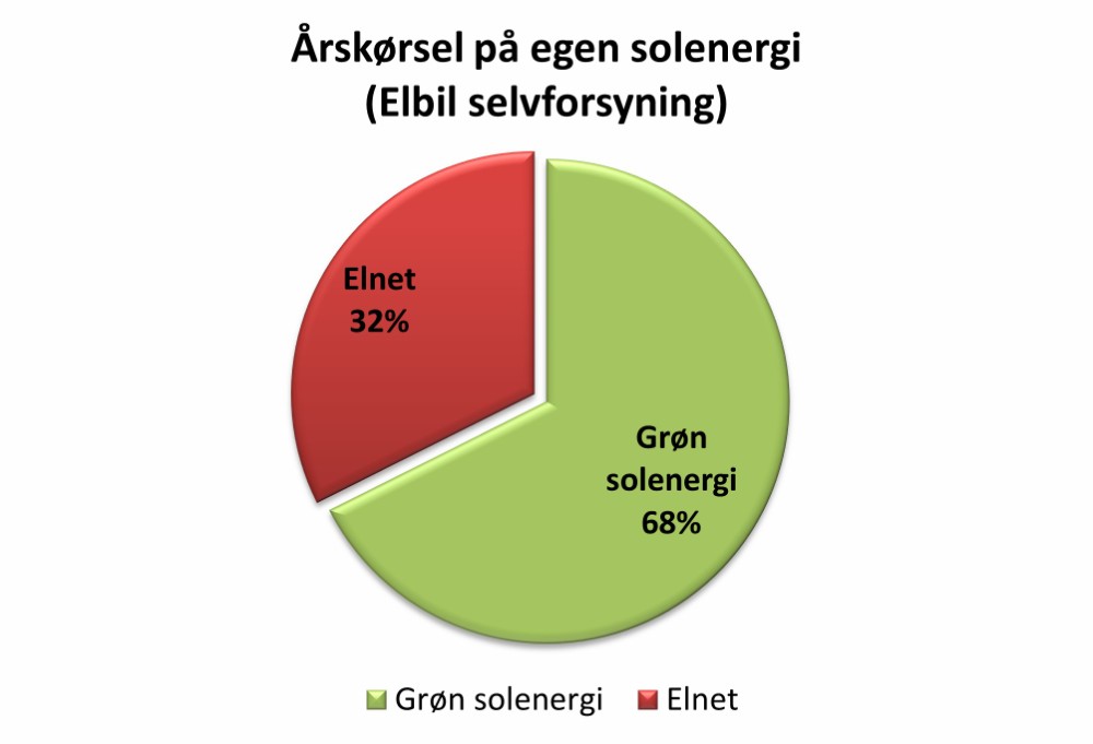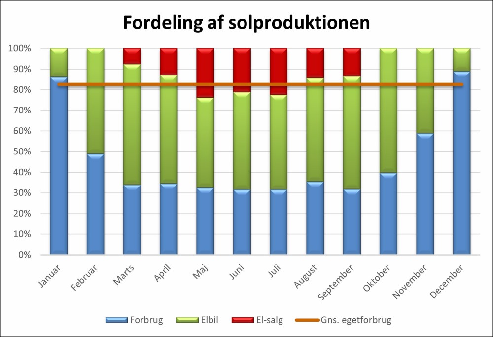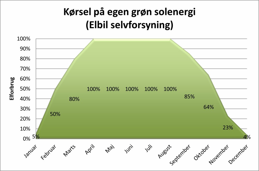 Det er en ganske stor del af elbilens forbrug der kan komme fra ens egne solceller. Ganske imponerende, når man tænker på de mørke vintre i danmark.