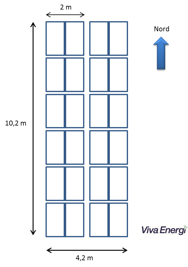 Herunder ses et 6KW anlæg (24 paneler), fordelt på 4 rækker med 6 paneler i hver: