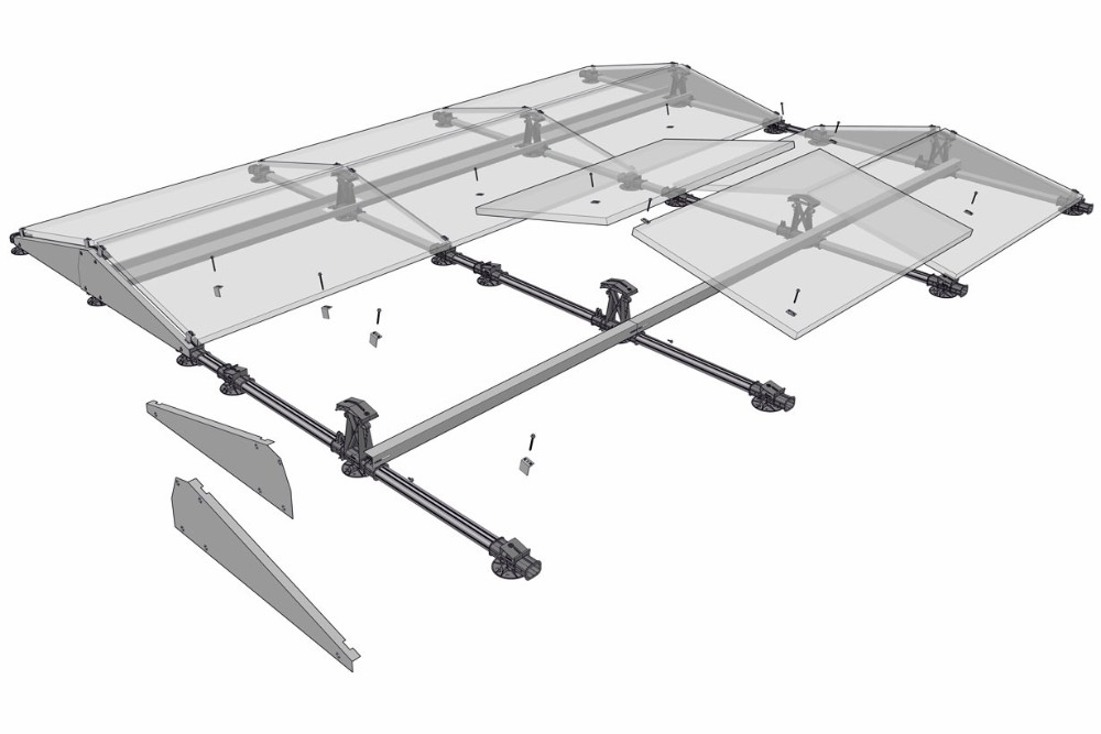 Systemet består af langsgående alu-skinner hvorpå vindbeslag og paneler monteres parvis på tværs i 13 graders hældning. Det hele er udført i vejrbestandig aluminium og plast. Systemet findes både i blank aluminium og sort.