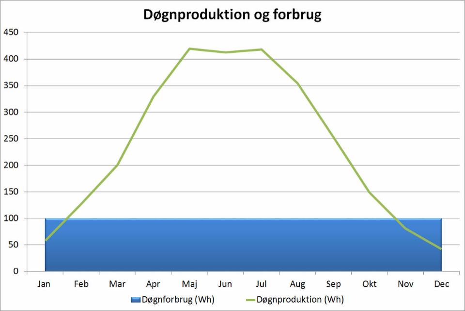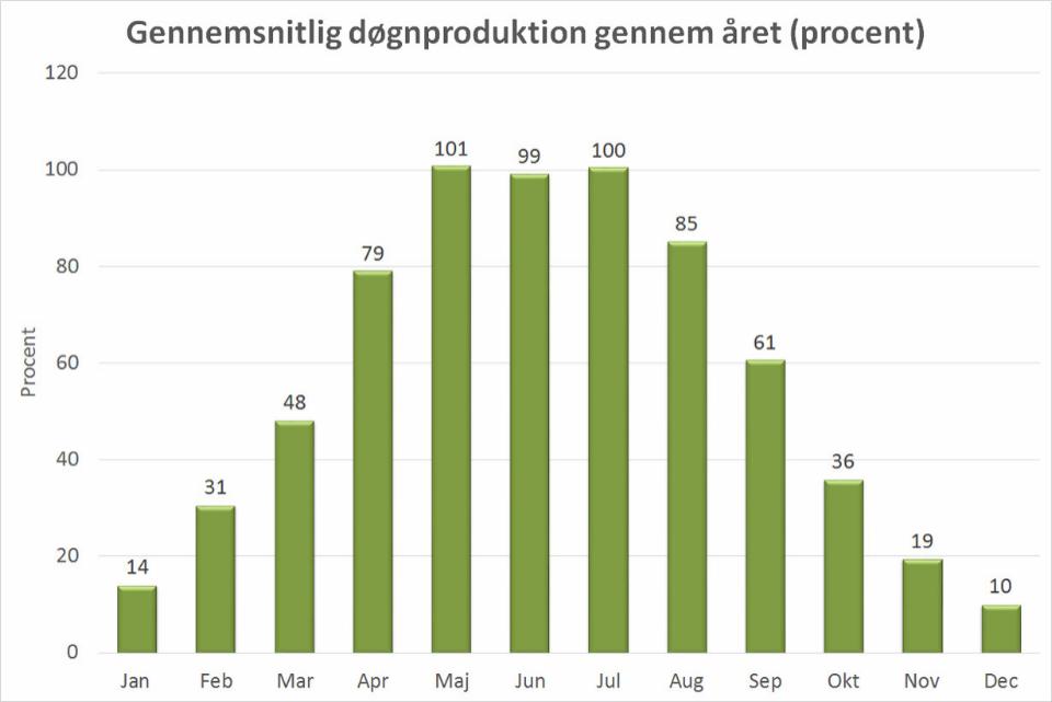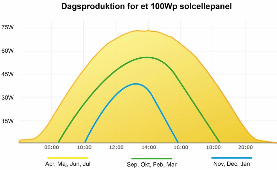 På denne side kan du lære mere om forholdet mellem paneleffekten og dagsproduktionen over året. Herunder finder du to tabeller, som kan hjælpe dig med at vælge den rigtige størrelse af solcelleanlæg.