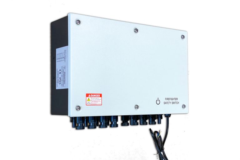 Brandmandsafbryder som slukker strømmen (PV) fra solcellekablerne der går igennem bygningen.
