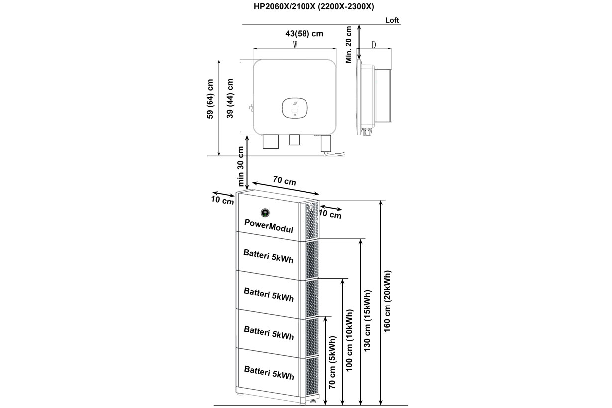 Denne inverter kan arbejde med vores højvolt lithiumbatterier. Den kan også fungere uden batteri som en "almindelig" inverter, hvis man senere vil opgradere. Inverteren kan tilsluttes en batteribank fra 5kWh til 30kWh.