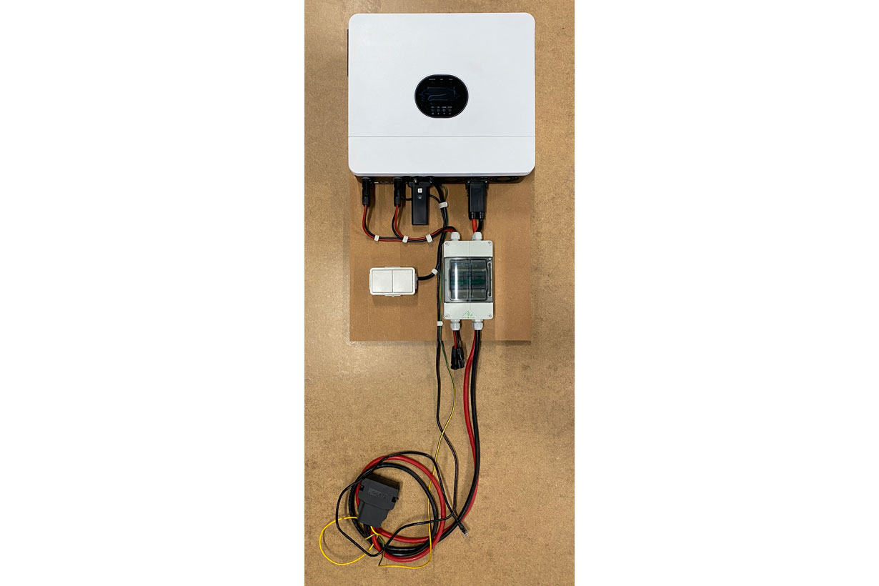 Dette varenummer består af HybridPower 1060-48 4KW inverter, som er monteret på en brandhæmmende plade, og samtidig er alle nødvendige afbrydere monteret og forbundet.