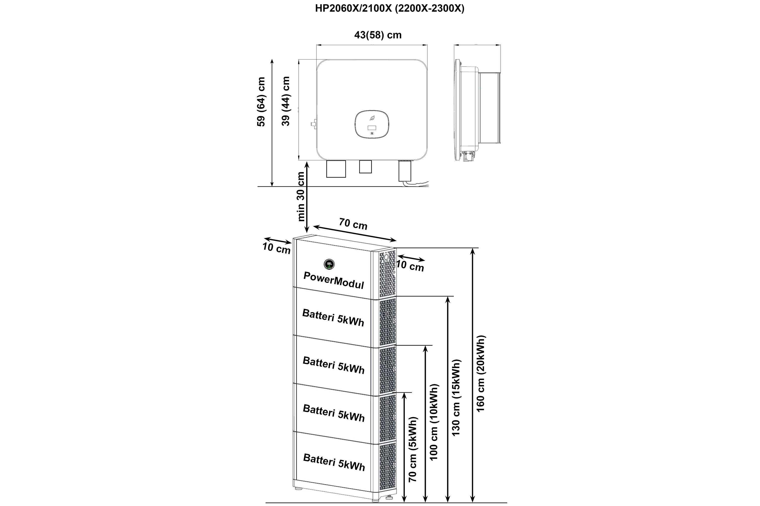 - 15kWh Lithiumbatteri m/fod. Kan opgraderes til 30KWh (Se under tilbehør)