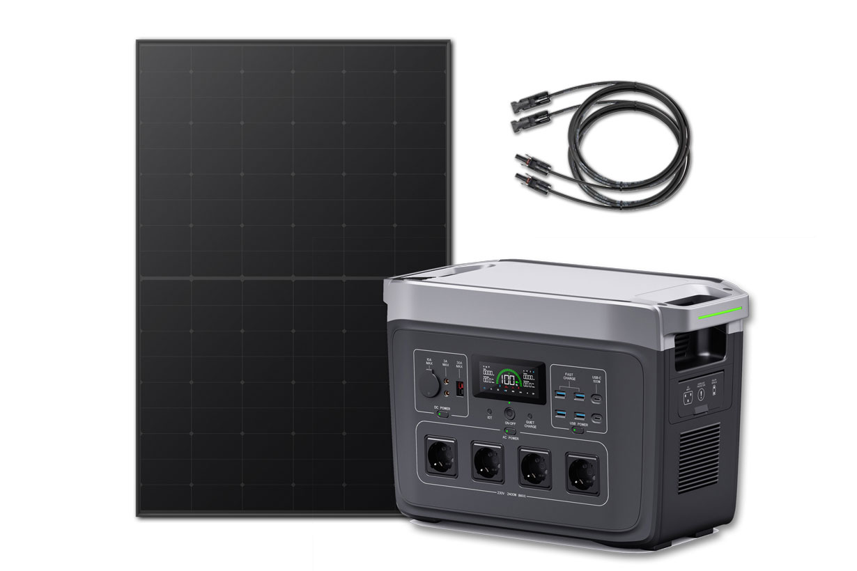 Med denne pakke får du vores transportable PowerBox 2000 sammen med et kraftigt 430Wp solcellepanel. Pakken er god til fx nødstrøm med god daglig produktion fra panelet på helt op til 1,7kWh pr. dag om sommeren.