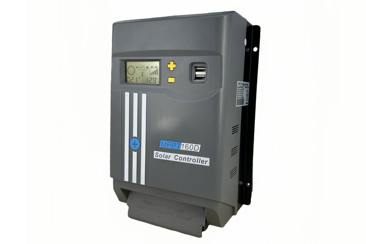 Laderegulator med MPP Tracker som får op til 35% mere ud af solcellen, da den arbejder ved panelets optimale arbejdsspænding. Max. indgangsspænding fra panelerne er 110V (150V Voc i kort tid).